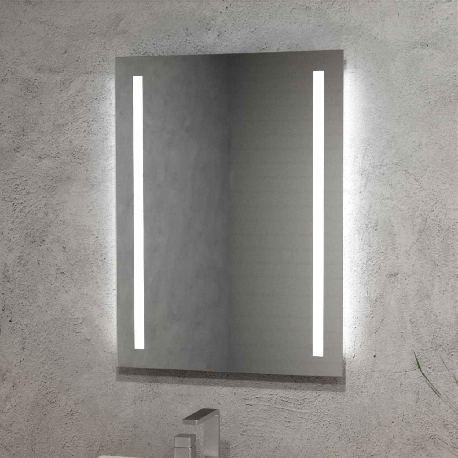 Un magnifique miroir Dana minimaliste de forme rectangulaire au design intemporel. Deux fines bandes LED mettent en valeur sa surface et illuminent délicatement le mur, créant une douce lumière d'ambiance. La simplicité de sa forme lui permet de s'intégrer parfaitement aux intérieurs modernes et classiques, et de sublimer l'aménagement d'une salle de bain, d'un dressing ou d'une coiffeuse.