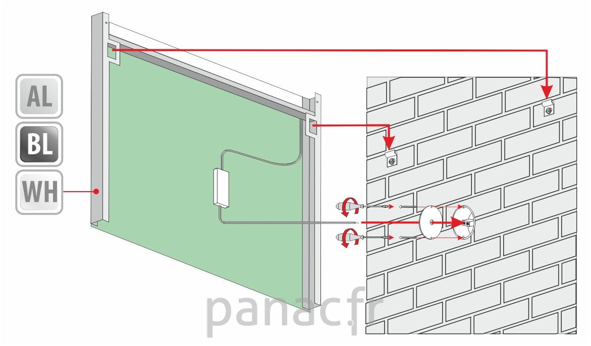 éclairage LED : blanc chaud - 3000 K, blanc neutre - 4000 K, blanc froid - 6000 K selon le choix