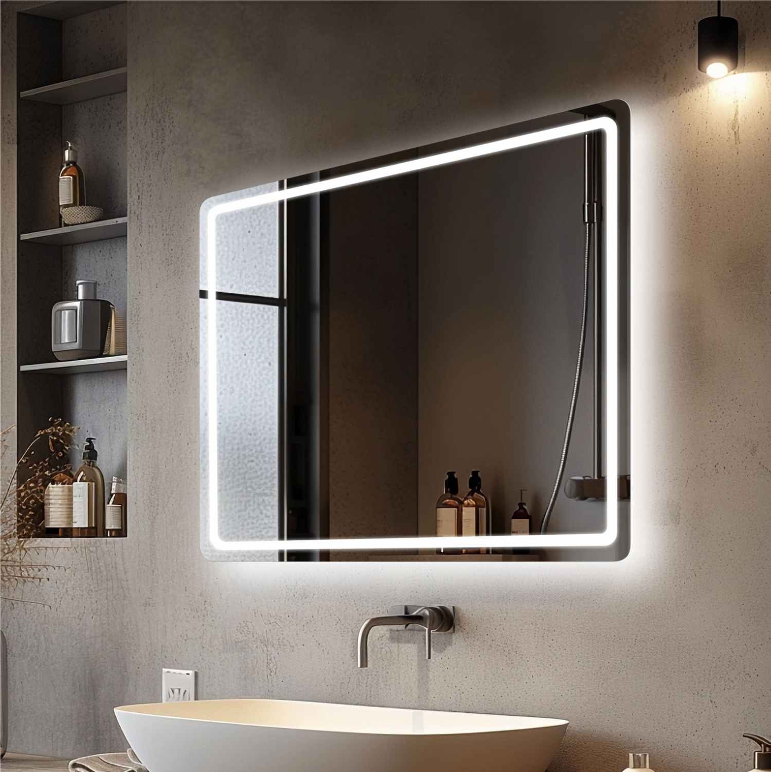 • Boutons tactiles discrets pour miroirs à cadre visible et couleur de lumière blanche réglable