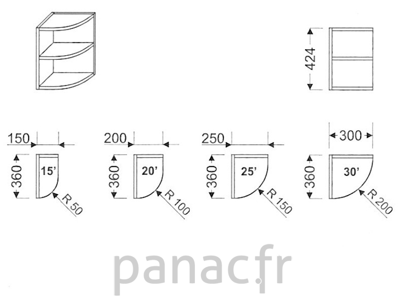 Meuble haut terminal ouvert, pan coupé