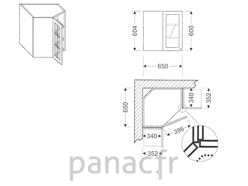 Meuble haut d’angle vitré